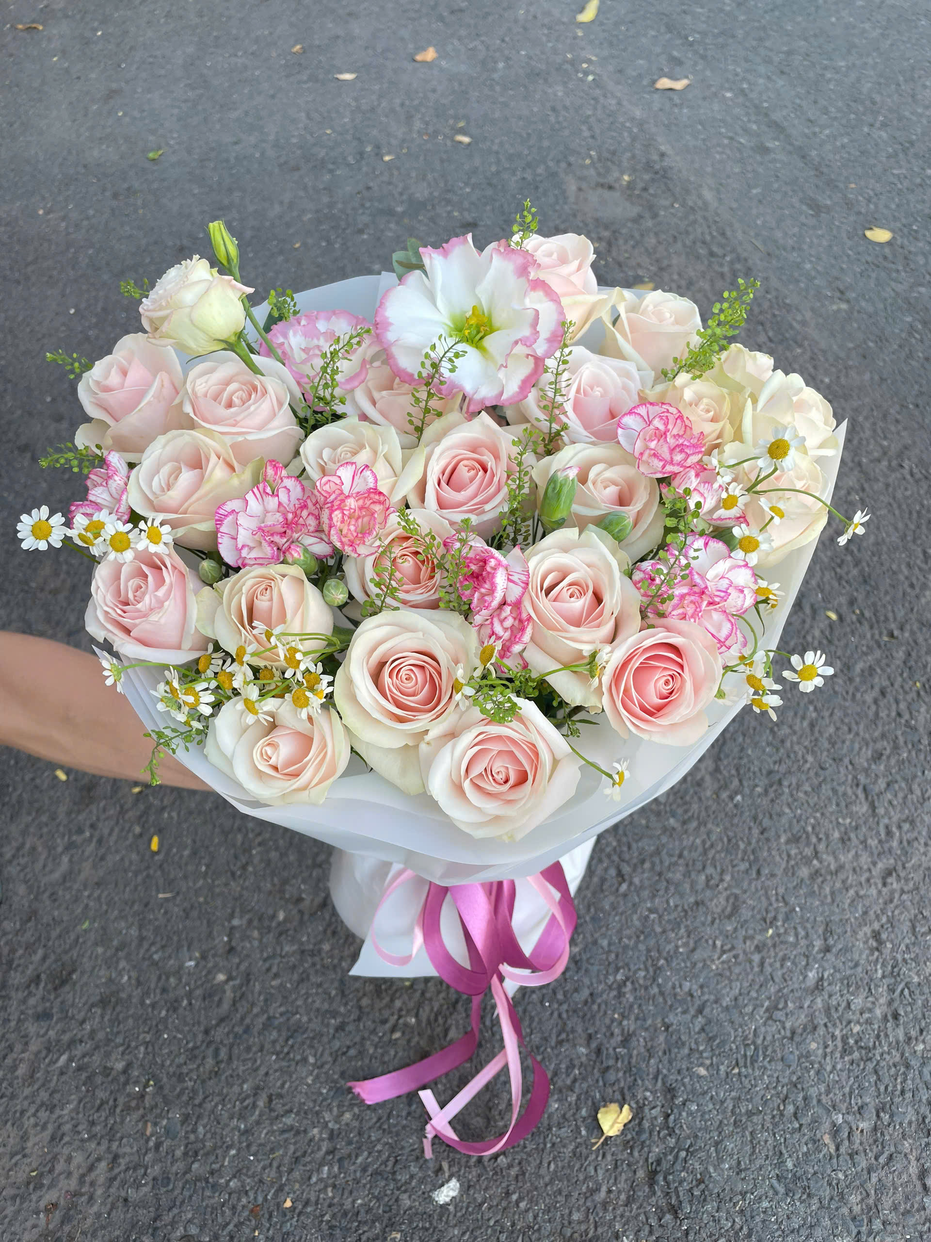 Bó hoa tươi Lilac Love bao gồm hoa hồng và các loại hoa lá phụ, thích hợp để tặng cho người yêu hoặc vợ, những cô nàng ngọt ngào.
